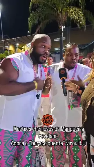 Os mestres Rodrigo Explosão e Taranta Neto não entregam só ritmo, não. Eles entregam conteúdo, história, fofoca boa e aquele carisma que só a Mangueira sabe produzir. Os dois explicaram que o tradicional “Buraco quente” agora atende por um outro nome : B.U. Pois é, minha gente, a bateria da Verde e Rosa está tão descolada que até o point do povo ganhou outro nome. E não tem como não rir: os mestres são figuras, daquelas que comandam com seriedade #mangueira #Carnaval #samba #rj