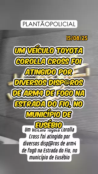 *LOCAL: Eusébio/CE* *OCORRÊNCIA: Tentativa de homicídio em Eusébio* Na manhã desta sexta-feira (15/08/2025), um veículo Toyota Corolla Cross foi atingido por diversos disparos de arma de fogo na Estrada do Fio, no município de Eusébio, Região Metropolitana de Fortaleza. #noticiasdeultimahora #notícia #últimasnotícias #flagrante #tiroteio