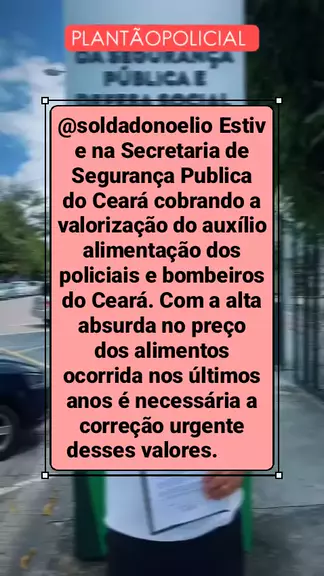 @soldadonoelio Estive na Secretaria de Segurança Publica do Ceará cobrando a valorização do auxílio alimentação dos policiais e bombeiros do Ceará. Com a alta absurda no preço dos alimentos ocorrida nos últimos anos é necessária a correção urgente desses valores. #noticiasdeultimahora #ceara3xmaisforte #últimasnotícias #flagrante #notícia