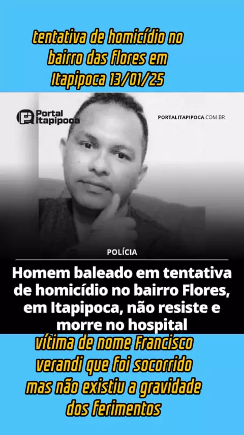 tentativa de homicídio registrada na cidade de Itapipoca vítima com conhecido como Francisco verandir 36 anos ainda foi socorrido mas não resistiu às gravidades dos ferimentos #viraliza #noticias #reportagem #news #jornalismo