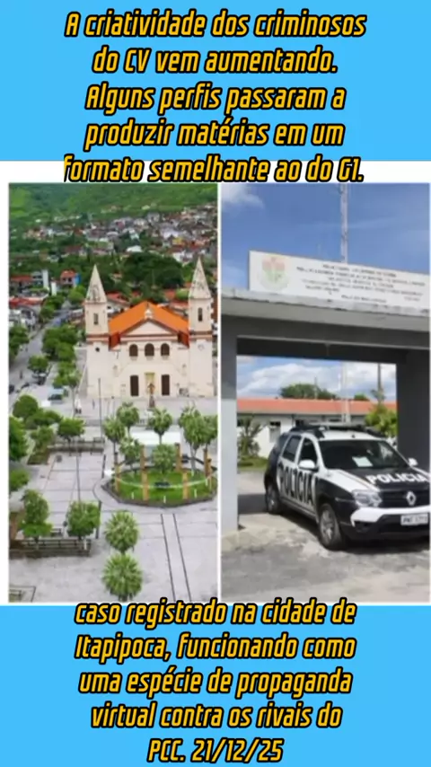A criatividade dos criminosos do CV vem aumentando. Alguns perfis passaram a produzir matérias em um formato semelhante ao do G1. Este é um caso registrado na cidade de Itapipoca, funcionando como uma espécie de propaganda virtual contra os rivais do PCC. #noticias #reportagem #Desafios12 #jornalismo #viraliza