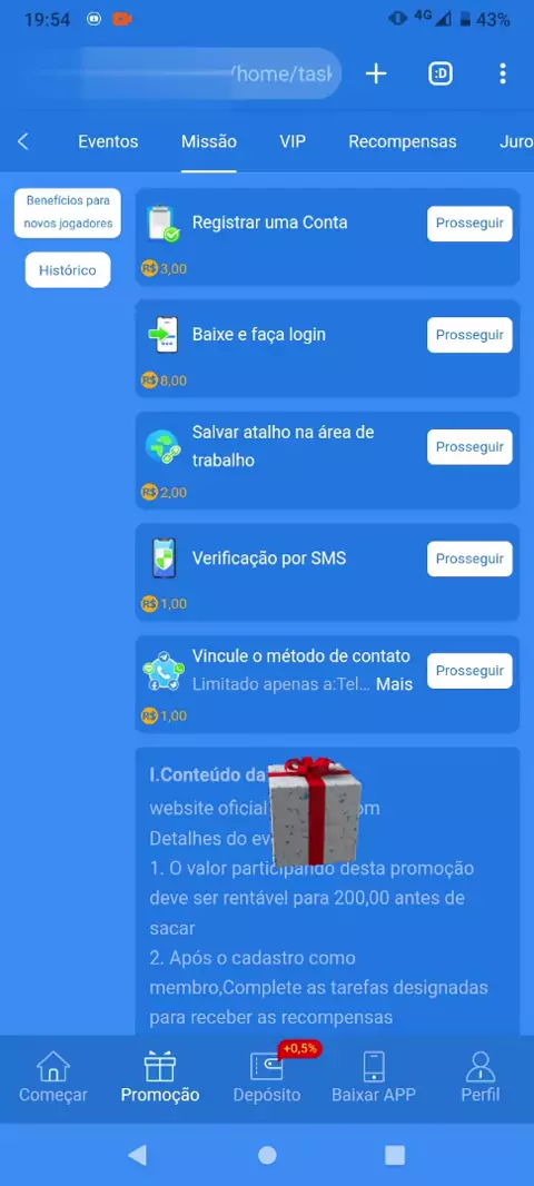 plataforma dando bônus no cadastro