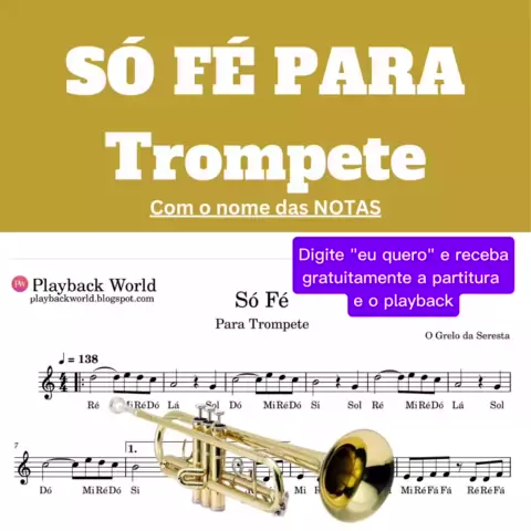 Só Fé Para Trompete COM PLAYBACK E PARTITURA EM PDF Digite "Eu Quero" e PEGUE GRATUITAMENTE A PARTITURA #trompete #trompetista