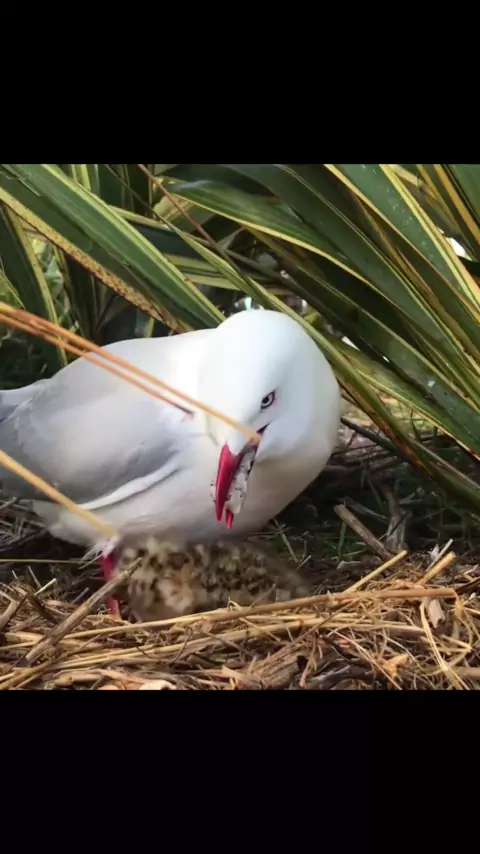 Gaivotas-de-bico-vermelho alimentam seus filhotes. Eles não são muito higiênicos, mas são realmente muito saudáveis. # Albatross