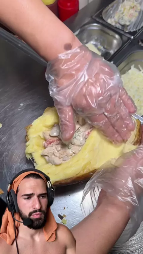 João FRANGO vendo como a batata, é feita! @filizkumpir #potato #batatarecheada