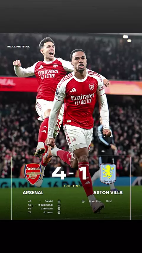 Arsenal pesta gol!!! Arsenal berhasil membalas dendam Aston Villa dengan kemenangan meyakinkan dengan skor 4-1🔥 Arsenal menghentikan rekor win-streak Aston Villa👏🔥 #PremierLeague #epl #ligainggris #arsenal #astonvilla #arsenalvsastonvilla #gabrielmagalhaes #gabriel #martinzubimendi #zubimendi #leandrotrossard #trossard #gabrieljesus #gabjes #mikelarteta #arteta #