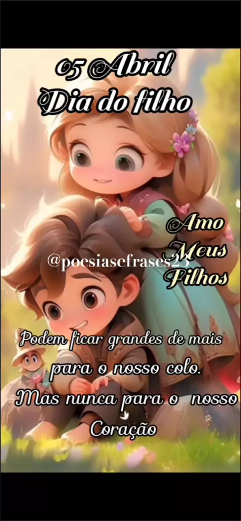 05 de Abril - Dia dos Filhos ... "Filho é o meio pelo qual Deus nos ensina o equilíbrio entre força e fraqueza. Por eles somos fortes, destemidas. Não há limite para a dimensão do amor. Por eles somos frágeis, vulneráveis. Suas dores doem em nós. Nos derretemos por um sorriso. Não dá pra saber onde eles acabam e nós começamos. Somos feitos da mesma matéria, um só ser selado pelo amor." #gratidão #bomdia #Filhos #DiaDoFilho #sextafeira