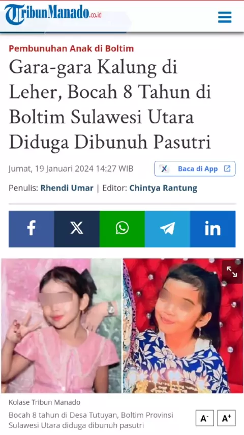 Gara-gara Kalung di Leher, Bocah 8 Tahun di Boltim Sulawesi Utara Diduga Dibunuh Pasutri - https://manado.tribunnews.com/2024/01/19/gara-gara-kalung-di-leher-bocah-8-tahun-di-boltim-sulawesi-utara-diduga-dibunuh-pasutri #pojokmanado #pojokmanadoid #pojokmanadodotid #suaraorangpinggiran #tribun #tribunmanado #boltim #boltimpunya #boltimpunya✨ #tutuyan #tutuyanboltim #beritakriminal #kriminal #kasuspembunuhanbocah #presisi #presisipolri #polri #manado #manadopunya #manado #manado