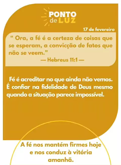 Tenha Fé! Confie em Deus, Ele é fiel para cumprir Suas promessas! ✨ Curta, compartilhe e ajude a fortalecer a fé de alguém hoje. 💛 #pontodeluz #devocional #fé #Deusàfrente #Hebreus11