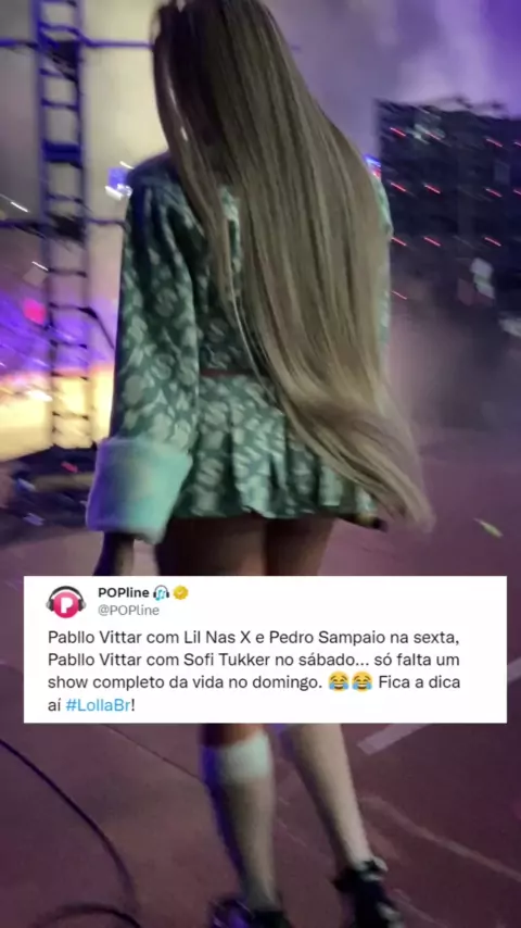 Virou #pabllopalooza! #pabllovittar faz terceira participação no #lollabr. Depois do Lil Nas X e Pedro Sampaio, na noite do sábado (25) foi a vez de feat com #sofitukker. #poplinenokwai
