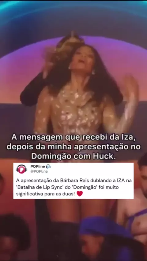 No último domingo (27) a atriz Bárbara Reis venceu a "Batalha do Lip Sync" no "Domingão com Huck" fazendo um tributo à IZA e seu show no Rock in Rio. Acabou que isso foi muito importante para a musa, o que ela deixou claro em um áudio fofo, ouve só!