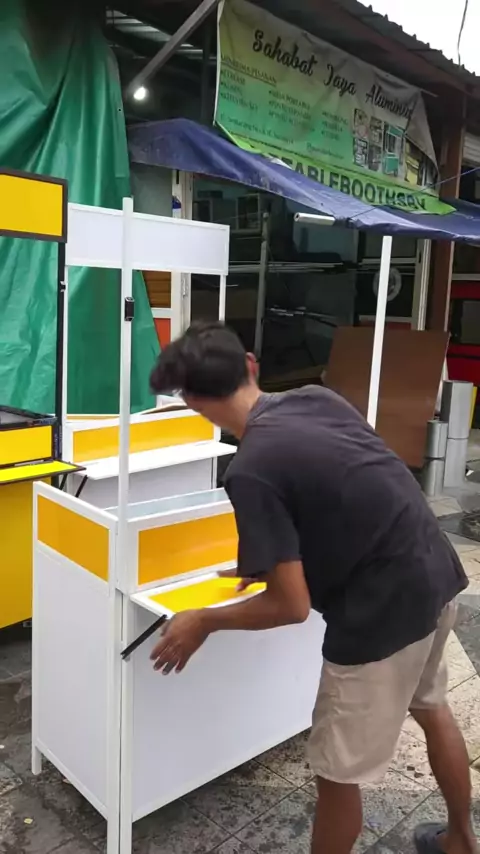 HARGA 750rb Booth portable paling simpel disini Ukuran 100 x 50 x 200 Bahan = rangka aluminium dinding melamin putih meja triplek 6mm dilapisin plat 0,25 info pemesanan, langsung klik link yang ada di bio#rombongkekinian#rombongsurabaya#rombongkontainer#rombongmurah#rombongunik#rombongbakso#rombongaluminium#rombongkekinian#rombongsedekah#rombongkediri#rombongsamarinda#rombongminuman#rombongaluminiumsurabaya#rombongminimalis#rombong_garage#rombonggresik#rombonggerobak#rombong#rombongmakanan#romb...