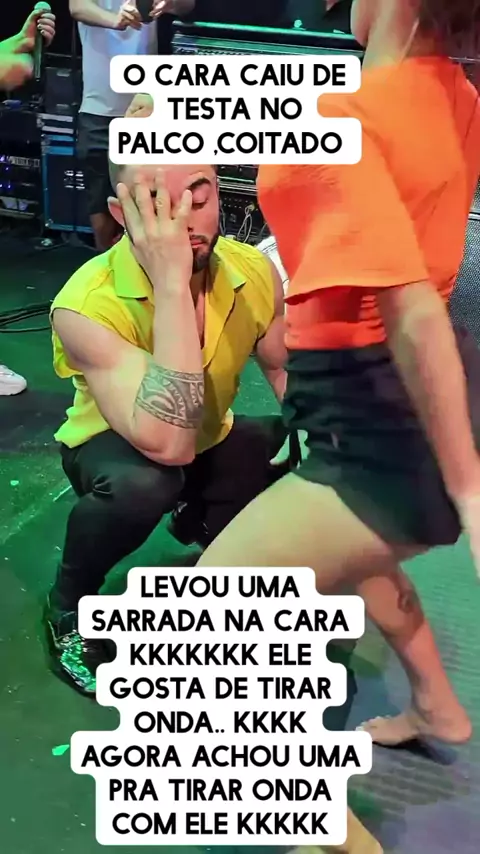 Juninho leva sarrada e cai de cara no palco