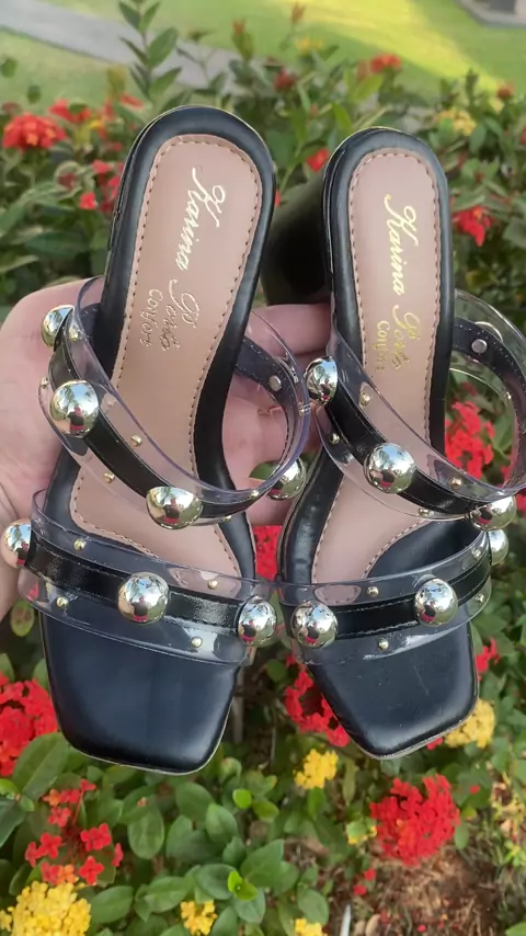 Tamanco feminino Transparente Vinil Salto bloco médio Sandália feminina saltinho básico detalhe dourado #kwaishop🛍️ #kwai #sapato #calcados #shoes