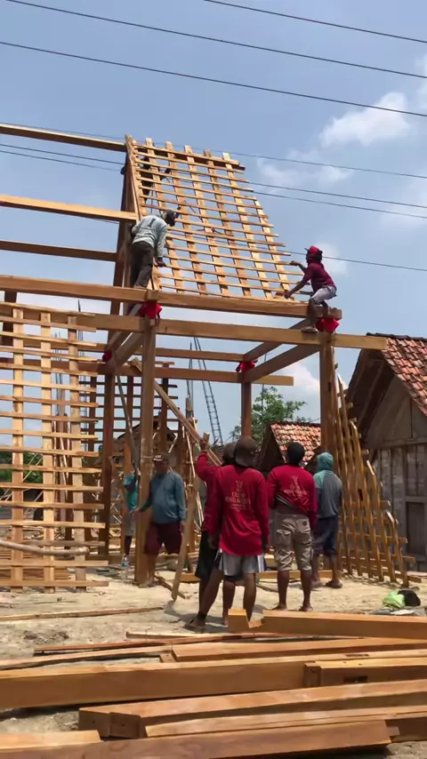 Part 9 instalasi limasan soko 16an di Serut Jati#jonomebelblora#jonomebel#rumahkayu#kayujatiblora#rumahlimasan