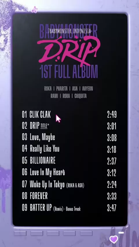 ini dia kumpulan track list preview full album babymonster, what is your fav song? 👀 #babymonster #babymonsters #babymonsteryg #baemon #monstiez #ygentertainment #YG #girlgrup #yggirlgrup #RUKA #PHARITA #ASA #AHYEON #RAMI #RORA #CHIQUITA # #kpop #BABYMONSTERCOMEBACK #COMEBACK #베이비몬스터 #FULLALBUMDRIP #DRIP #loveinmyheart