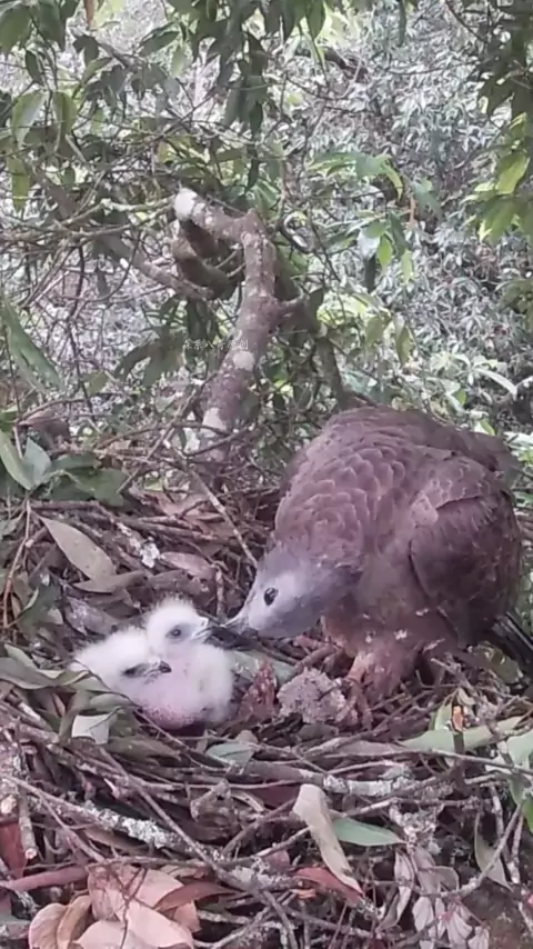 A águia-abelha, o pai da águia trouxe de volta a pupa da abelha, mas a grande águia a impediu do irmão mais novo.