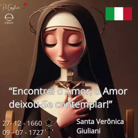 Santo do dia 09 de julho: Santa Verônica Giuliani. Santa Verônica Giuliani, foi uma monja clarissa capuchinha e uma mística. Religiosa dedicada, se dedicava em penitencias e se tornou abadessa do moseiro. #santododia Siga no youtube: https://youtube.com/@PriGagliLima?si=bxO3AfLd4HtE4KQc