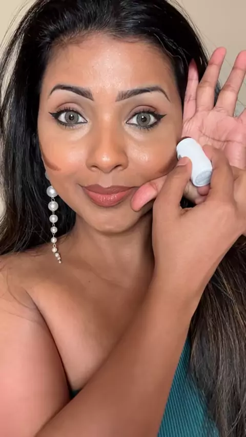 Diga olá para características perfeitas e esculpidas Blush e truque de contorno para iniciantes blush em bastão de contorno - sonhador # makeuptutorial # glowingskin # spring # summer # howto # browngirlmakeup # budgetfriendly # contorno # blush