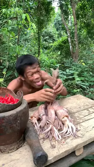 Parte 14 | Super spicy grilled squid Part 1 #food_primitive #primitive #food #cooking