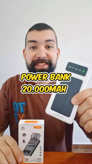 Carregador Power Bank Com Tela Solar Portátil 20.000mah Carregamento Rápido 5 Cabos Em 1 Carregador #carregador #powerbank #solar #carregamento #Celular