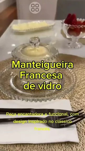 🧈 Deixe seus momentos à mesa ainda mais especiais com nossa manteigueira francesa de vidro trabalhada! 🧈 #ManteigueiraFrancesa #ElegânciaNaCozinha #Sofisticação #CulináriaComEstilo #DecoraçãoDeMesa