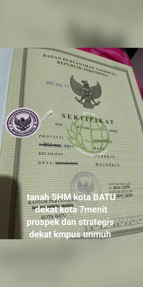 jual tanah SHM kota BATU easy contact 085704141027