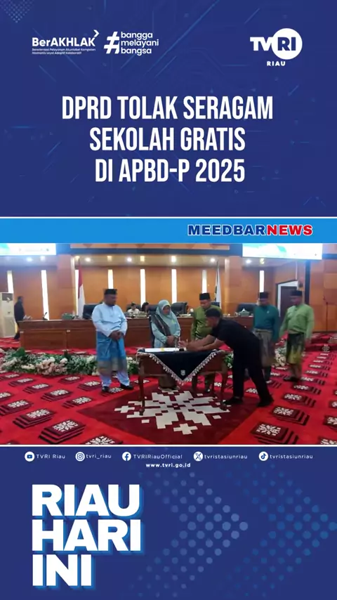 DPRD TOLAK SERAGAM SEKOLAH GRATIS DI APBD-P 2025 Saksikan Riau Hari Ini, program berita terpercaya yang menyajikan informasi akurat dan aktual seputar Riau. Tayang setiap hari pukul 15.00, hanya di TVRI Riau#tvririau#meedbarnews#riauhariini##kembaliketvri#rumahbulutangkis