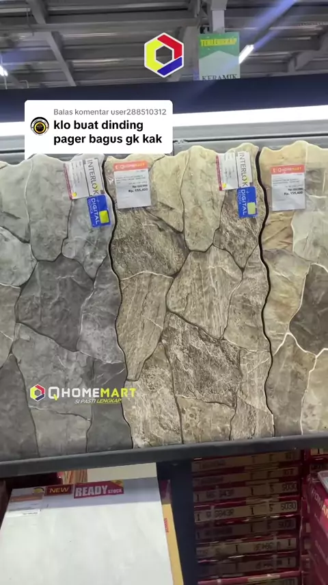 Membalas @user288510312 Untuk dinding pager lebih cocok motif batu alam kakak😊 #qhome #qhomemart #keramik #batualam #pagar #outdoor #lantaivinyl #dinding #keramikdinding #dindingpagar #lantaigranit #vinyl #bahanbangunanlengkap #qhomedesign #roman #milan #qnq #indogress #singress