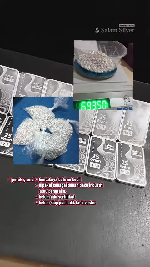 Perak granul = bahan mentah Perak batangan = produk jadi Sama-sama murni 999, tapi beda fungsi : Granul buat bahan baku⚒️ Batangan buat investasi💎#salamsilver#logammulia#perakmurni#investasi#perak