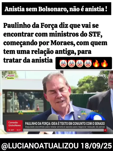 PALHAÇO 🤡🤮😈🔥 Paulinho da Força diz que vai se encontrar com ministros do STF, começando por Moraes, com quem tem uma relação antiga, para tratar da anistia. 📌 Sigam @lucianoatualizou Via Globonews Reprodução 🎥 #noticias #anistia #Bolsonaro