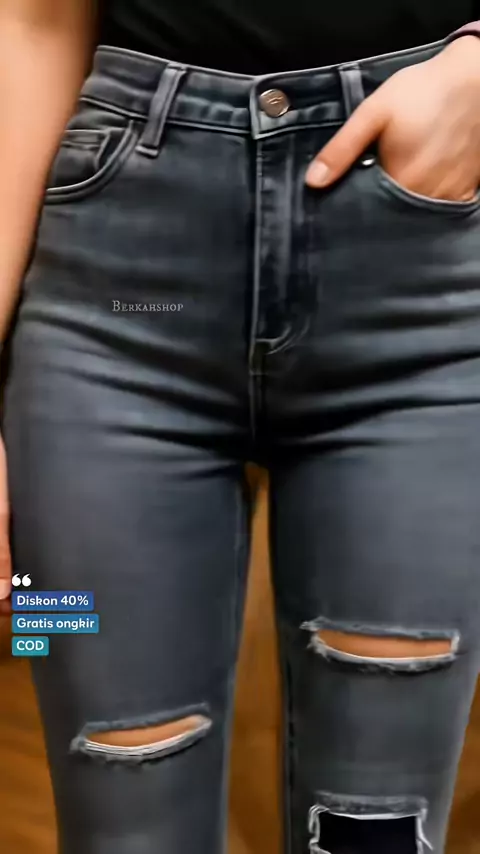 Celana jeans rippedโค๏ธโ๐ฅ #celanajeans #celanawanita #jeansripped #celanasobek #celanahighwaist