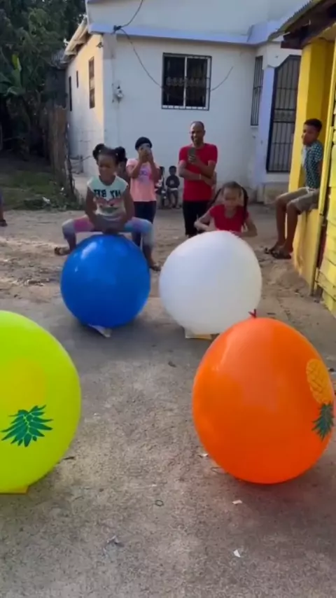 Menginjak balon estafet, gadis kecil 50g sangat lucu.