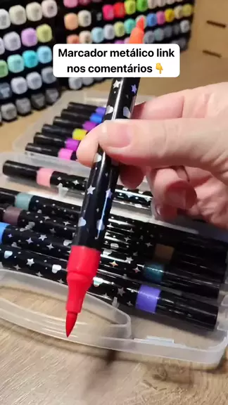 Marcador metálico caneta de glitter de cabeça dupla marcador de cabeça dupla brilhante👇✅#caneta #shoppeBrasil #metalica