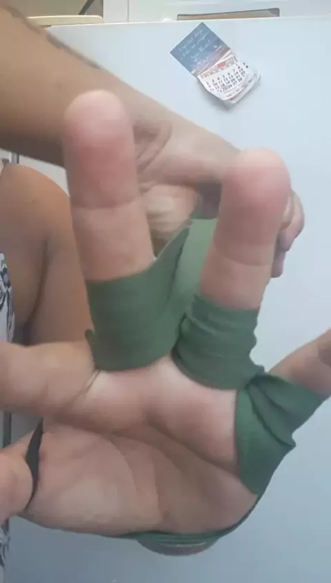 Colocando a tala da luva de boxe🥊
