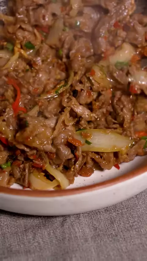 Oseng Daging Pedas - Bahan : 250 gr beef sliced Bumbu Halus 4 siung bawang merah 9 siung bawang putih 2 pcs cabai merah besar 3 pcs cabai rawit merah minyak 1 pcs bawang bombay 10 lbr daun jeruk 2 sdt kaldu jamur 1/4 sdt garam 1/2 sdt merica bubuk 1/2 sdt gula pasir 2 sdm saus tiram 2 pcs cabai merah besar daun bawang - #resepsimple #masakansimple #resep #idemasaksimple #masakanrumahan #resepdagingsapi