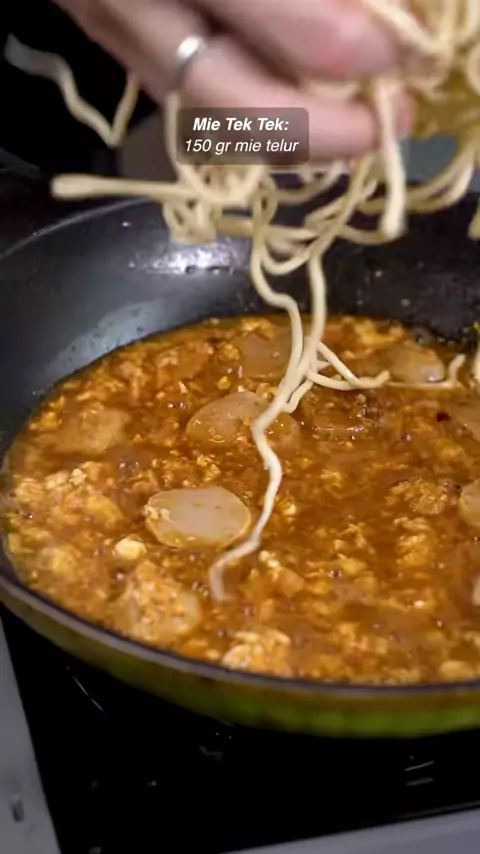 Mie Tek Tek - Bahan : Bumbu Halus : 3 siung bawang putih 2 siung bawang merah 2 pcs kemiri 100 ml air 2 pcs bakso sapi 1 butir telur 200 ml air 2 sdm kecap manis 1 sdm saus tiram 1/2 sdm saus sambal 1 sdt kaldu jamur 1/4 sdt merica bubuk 1/4 sdt garam 150 gr mie telur 1 pcs cabai keriting merah daun bawang ayam suwir sawi hijau -#resepsimple#masakansimple#resep#idemasaksimple#resepprumahan#resepmasakan