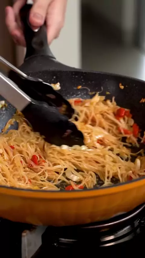 Bihun Goreng Pedas - Bahan : 50 ml air panas 2 sdm kecap asin 2 sdt kaldu jamur 1/2 sdt gula pasir 1 sdt cabe bubuk 1 sdt saus tiram 1 sdm saus sambal Chop : 8 pcs cabe keriting merah 6 pcs bawang merah 4 pcs bawang putih 60 g kol 2 batang daun bawang 1 sdm kecap manis 150 gr bihun air hangat - #resepsimple #masakansimple #resep #idemasaksimple #masakanrumahan #resepbihungoreng