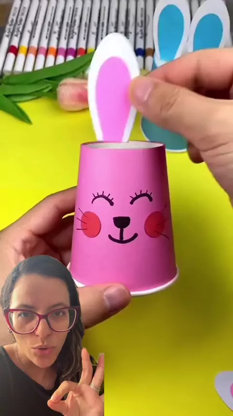 Olha que ideia linda para a Páscoa. Com copo descartável, cartolina, tampinhas e uma liga, você faz um coelhinho super criativo e divertido. É daquelas lembrancinhas fáceis que encantam as crianças e ainda reaproveitam materiais simples. Me conta, você faria um desse? #pascoa #coelhinho #lembrancinhacriativa #diy #artesanato
