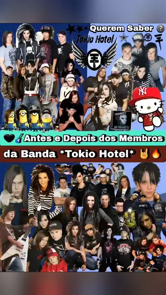 **🖤🎸 Antes e Depois dos Membros da Banda *Tokio Hotel * 🤘🔥** Vamos relembrar como estão hoje os integrantes da icônica banda *Tokio Hotel*, que surgiu em 2001 e marcou a adolescência de muitos até hoje! Vem ver a transformação de cada um dos membros: *Bill Kaulitz, Tom Kaulitz, Georg Listing, Gustav Schäfer* Essa banda deixou sua marca na música e na vida de uma geração! 🖤🤘 #antesedepois #nostalgia #Atores #famosos #Melhorvídeo