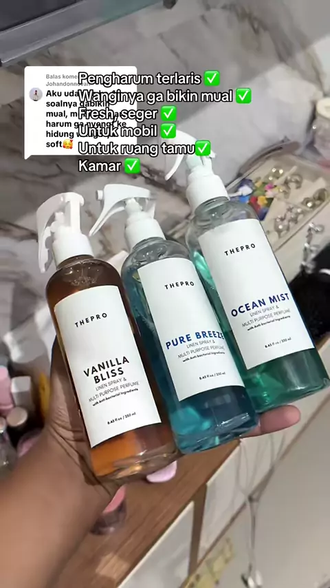 Membalas @Johandonnovan Mobil wangi rumahpun harum! Cukup semprot THEPRO, bau apek langsung hilang dan muncul aroma segar, soft, seketika. Bisa untuk tempat tidur, sofa, gorden rumah, dan mobil.intinya yg berbahan kain.tinggal semprot ke bahan kain seperti sofa tempat tidur,jok mobil Klik keranjang kuning mumpung lagi diskon #pengharummobil #pengharumruangan #pewangimobil #