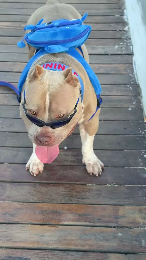 Óculos novo dele kkkk #pitbull #pitmonster #americanbully