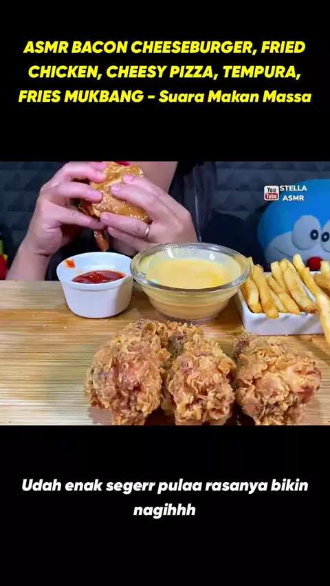 ASMR BACON CHEESEBURGER, FRIED CHICKEN, CHEESY PIZZA, TEMPURA, FRIES MUKBANG MASSIVE Eating Sounds