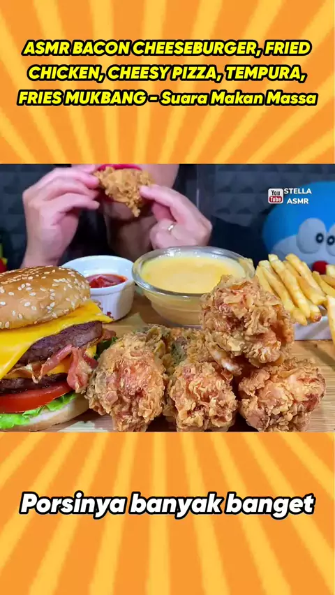 ASMR BACON CHEESEBURGER, FRIED CHICKEN, CHEESY PIZZA, TEMPURA, FRIES MUKBANG MASSIVE Eating Sounds