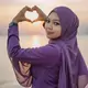 Gimana sudah cocok jadi CEO perusahaan apa belum nich🤭🤭🤭 Buat ini dengan google ai Studio Prompt : editorial portrait of a poised model sitting slightly forward against a smooth gradient backdrop fading from warm beige at the top to deep grey at the bottom, her hand in the jaw, the other hand folding on the black table, They wear a sculptural black outfit with long sleeves, wearing hijab black and bold statement earrings. Dramatic lighting from the front, soft shadows, high-fashion magazine