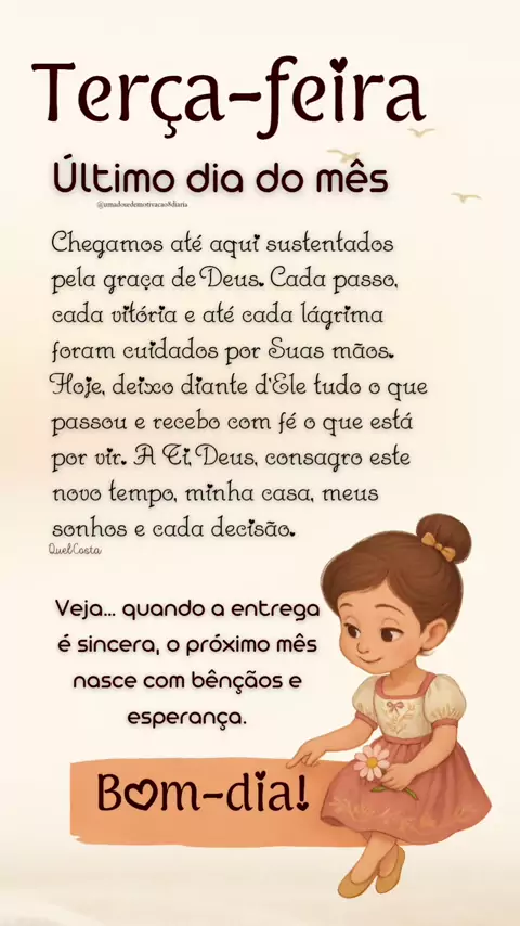 Chegamos até aqui sustentados pela graça de Deus. Cada passo, cada vitória e até cada lágrima foram cuidados por Suas mãos. Hoje, deixo diante d’Ele tudo o que passou e recebo com fé o que está por vir. A Ti, Deus, consagro este novo tempo, minha casa, meus sonhos e cada decisão. ✨ QuelCosta . . . 👇🏻 Conta @umadosedemotivacao8diaria #GraçaDeDeus #FéQueRenova #EsperançaQueConduz #ConsagroAMinhaVida #QuelCosta