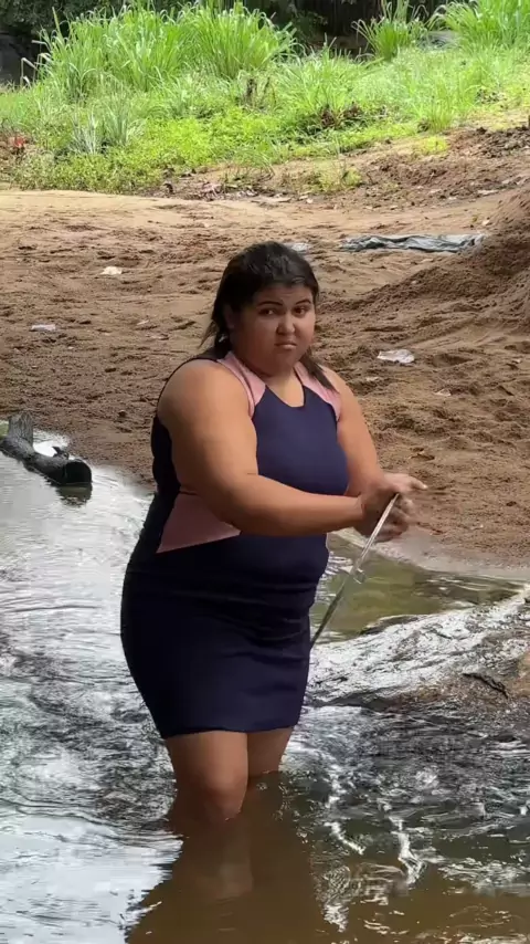 Lavando as louças no rio 😍