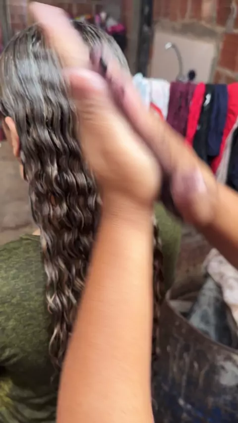 Passando matizador nos cabelos da tauane