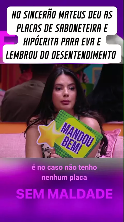 NO SINCERÃO MATEUS DEU AS PLACAS DE SABONETEIRA E HIPÓCRITA PARA EVA #bbbnokwai #fofocas #entretenimento #bbb25 #SegurançapraKwai