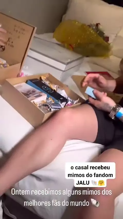 Lucas Souza e jaquelline abrindo recebidos do jalu🐚🥰 #jalu #LucasSouza #jaquelline #jallu #afazenda15